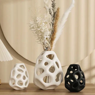 CAPIRON Aushöhlen Keramikvase Weiß Nero Nordische Klassische Ästhetik Büro Zuhause Wohnzimmer Innendekoration Zubehör