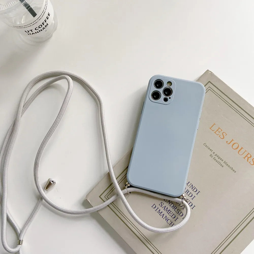 Crossbody Halskette Strap Lanyard Cord Flüssigsilikon Telefon Fall Für iphone 15 14 13 12 MiNi 11 Pro