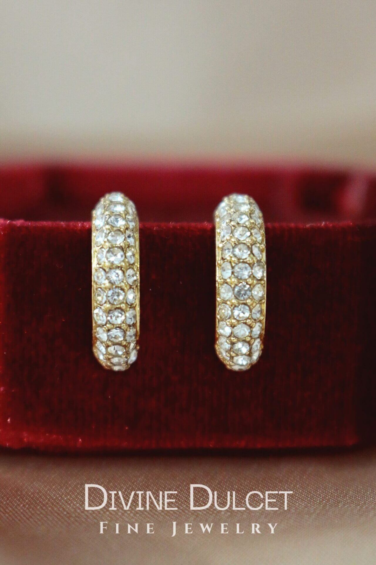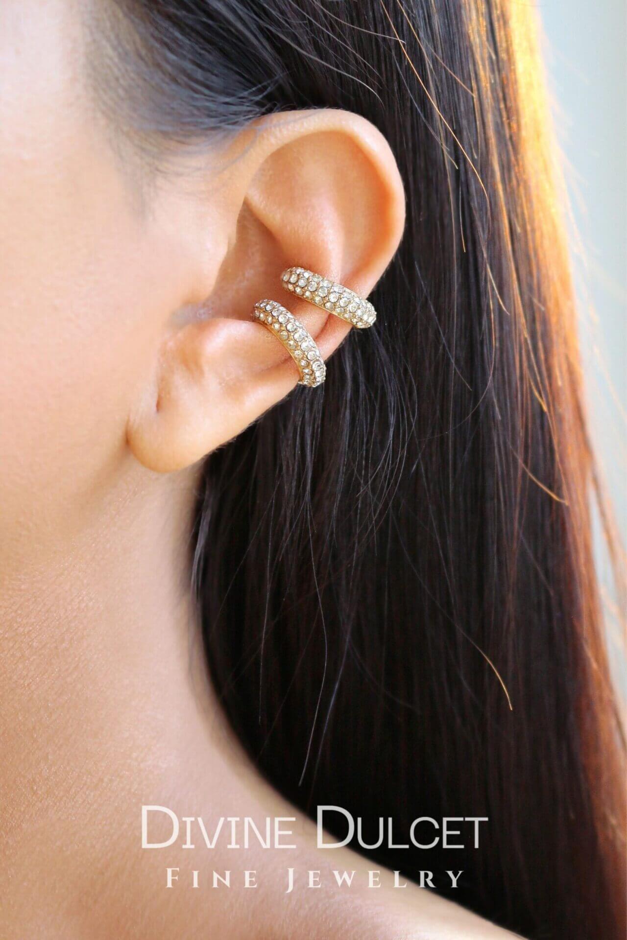 Questi graziosi orecchini a polsino in oro sono realizzati in rame placcato oro 18 carati con intarsi di zirconi cubici in stile pavé che ricreano splendidi riflessi di luce; sono leggeri e molto comodi da indossare anche per periodi prolungati, inoltre sono ipoallergenici (adatti alle pelli sensibili) e privi di nichel.