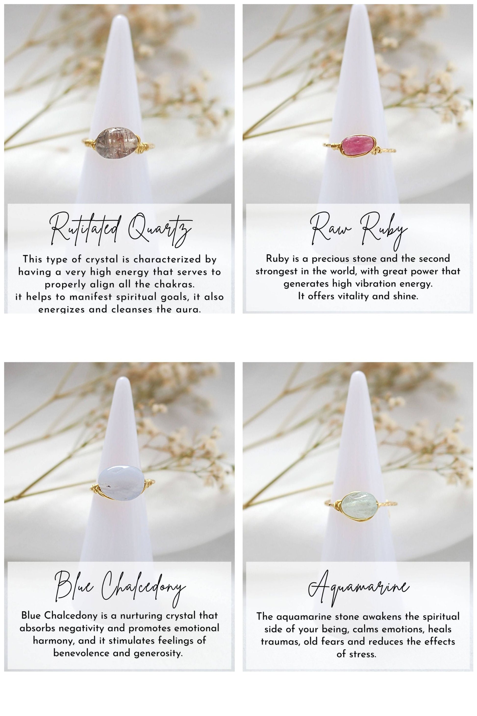Grazie ai cristalli naturali, questi anelli hanno lo scopo di aiutarti ad attrarre qualsiasi desiderio tu stia manifestando, poiché questi cristalli generano vibrazioni elevate, armonizzano la tua aura e ti proteggono dalle energie negative provenienti dall'ambiente o da altre persone.