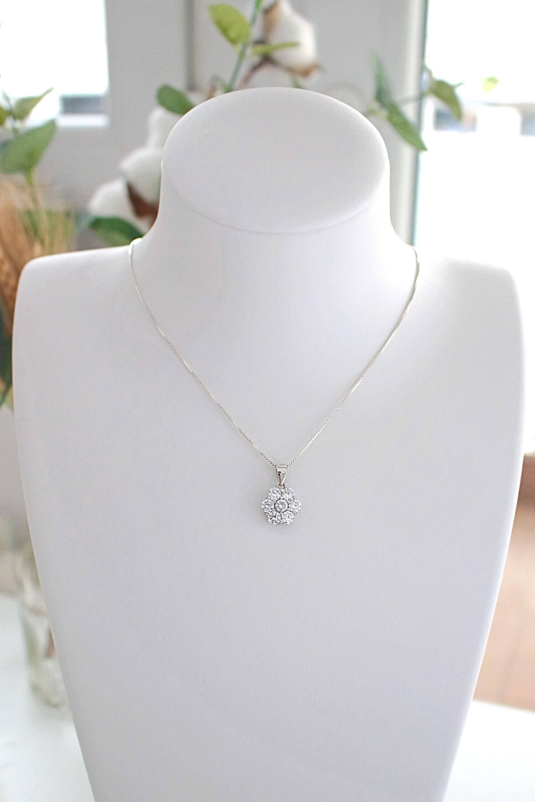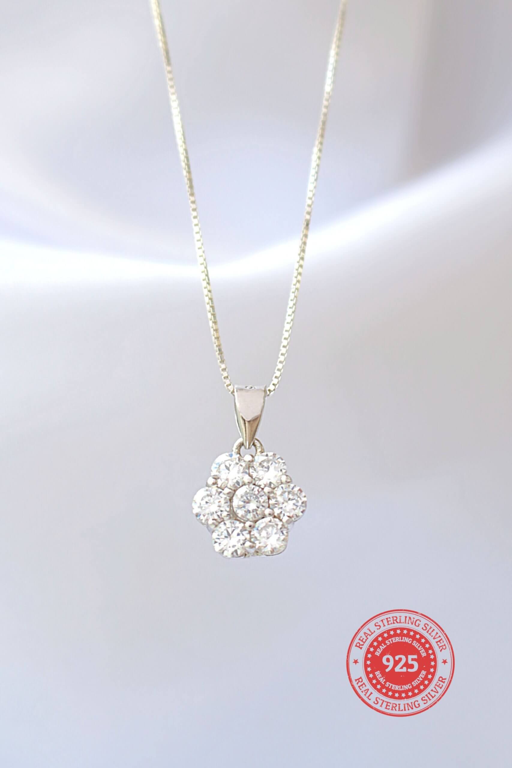 Collana con ciondolo a forma di fiore in argento 925 e zirconi cubici