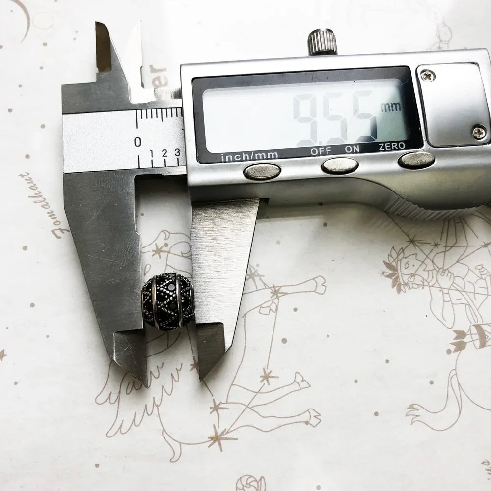 Perline nere a zig zag con micro pavé, ciondolo a sfera per donna, fai da te, creazione di gioielli raffinati, argento sterling, regalo di moda in Europa