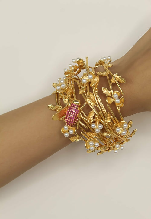 Nidhi trae ispirazione dalla natura e questo è probabilmente uno dei suoi capolavori. Se hai visitato il giardino botanico di Madrid, l'atmosfera floreale di questo braccialetto potrebbe evocare ricordi felici.