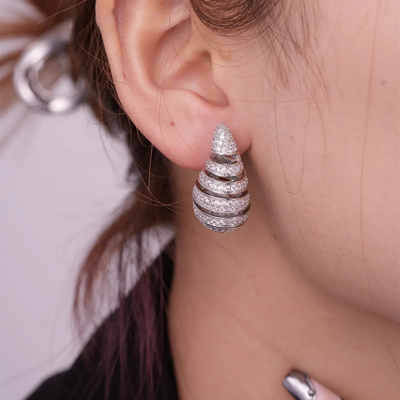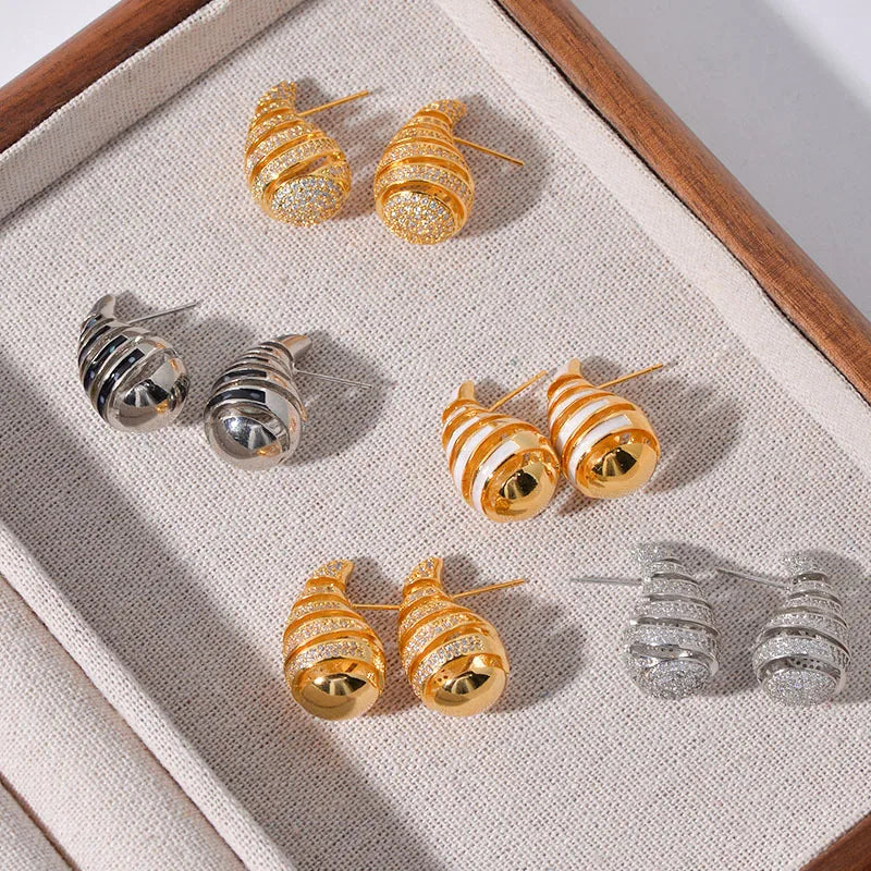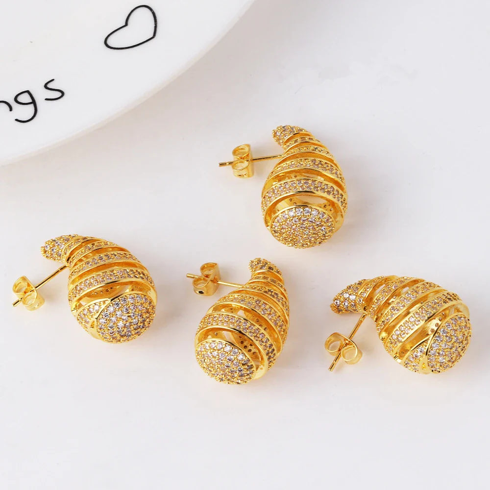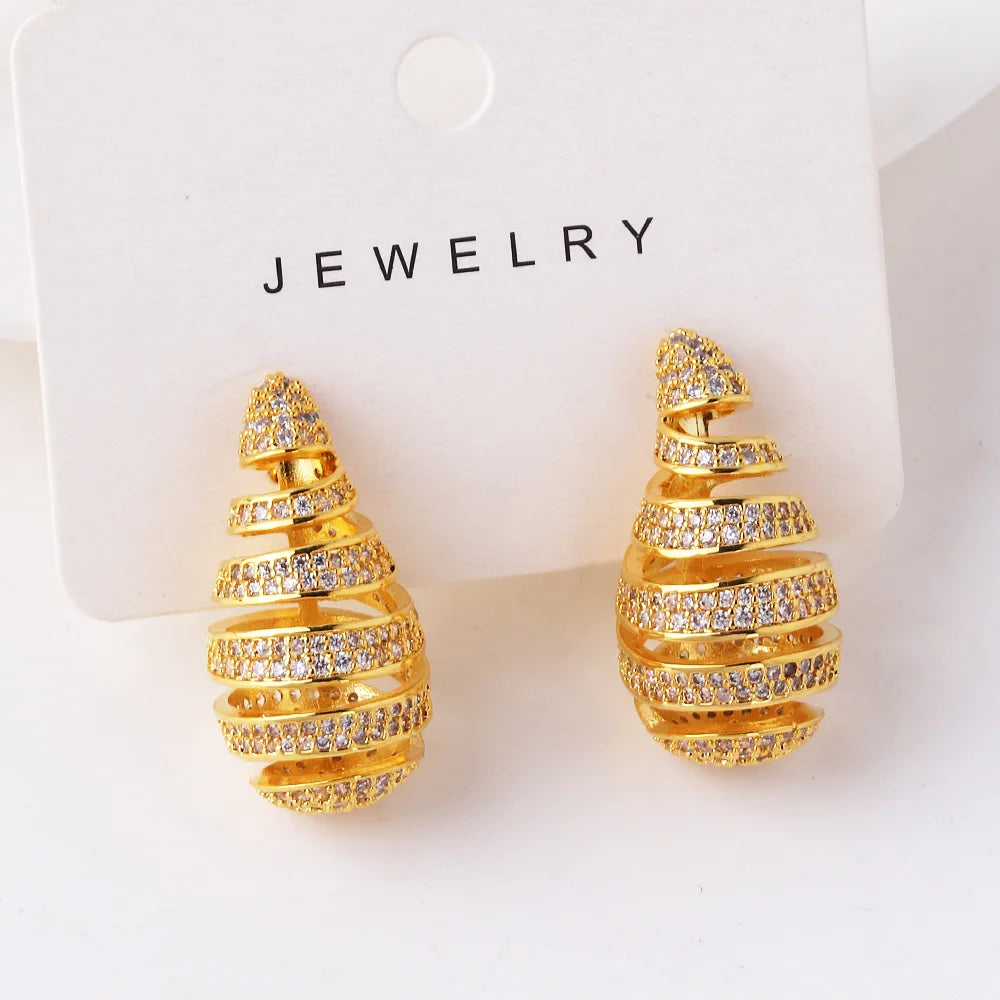 Orecchini a goccia con cupola cava placcati in oro e zirconi per donna