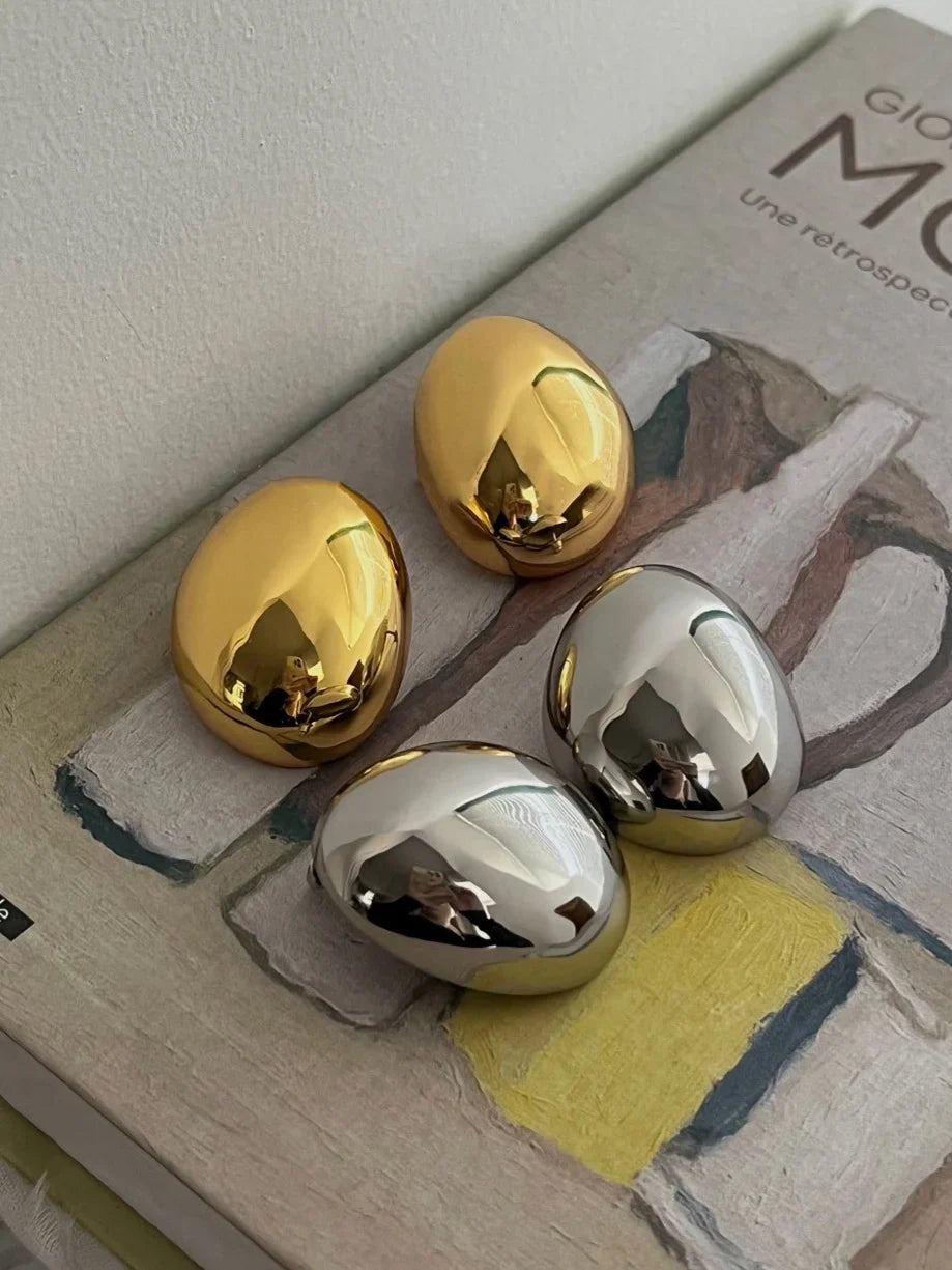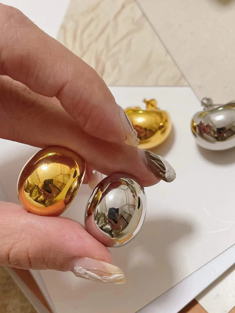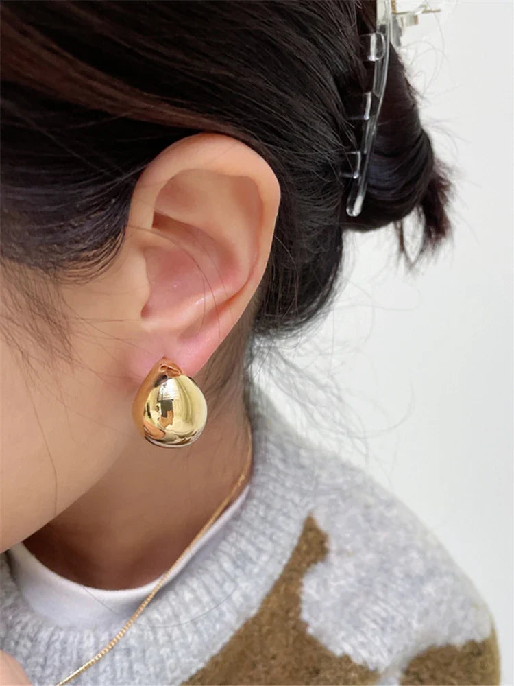 Orecchini a forma di luna semicircolare in oro e argento, spessi, a forma di C, per donna