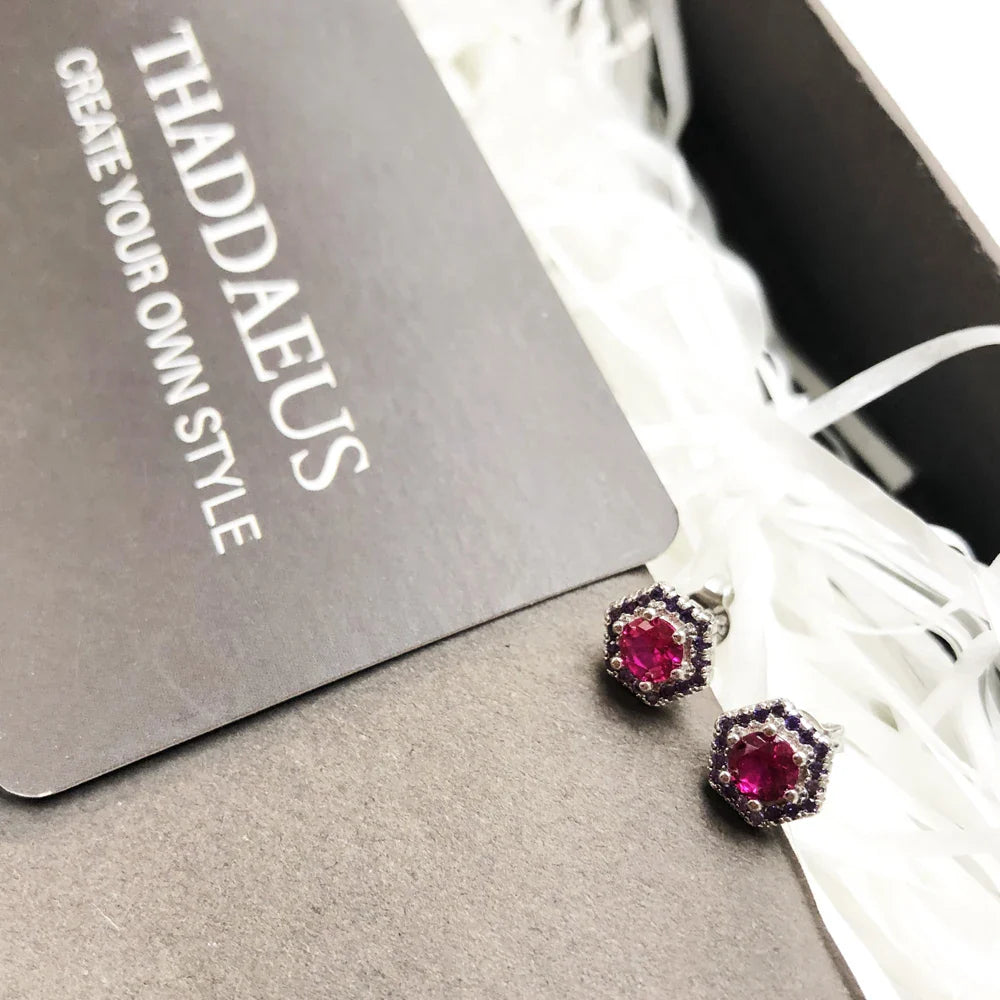 Orecchini a bottone esagonali rossi, gioielli raffinati in stile europeo per donne, regalo fatto a mano in argento sterling 925