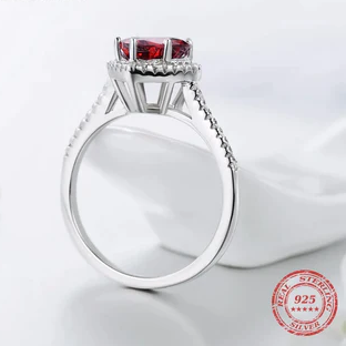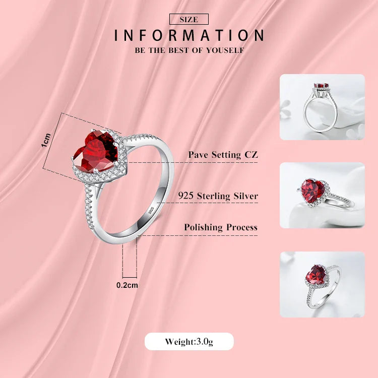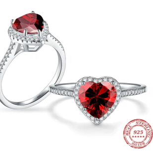 Anello in argento sterling 925 con cuore rosso e zirconi cubici 5A