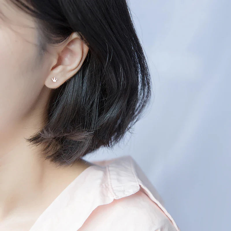 Orecchini a bottone alla moda squisiti a forma di corona, piccoli e carini, in argento sterling 925, da donna