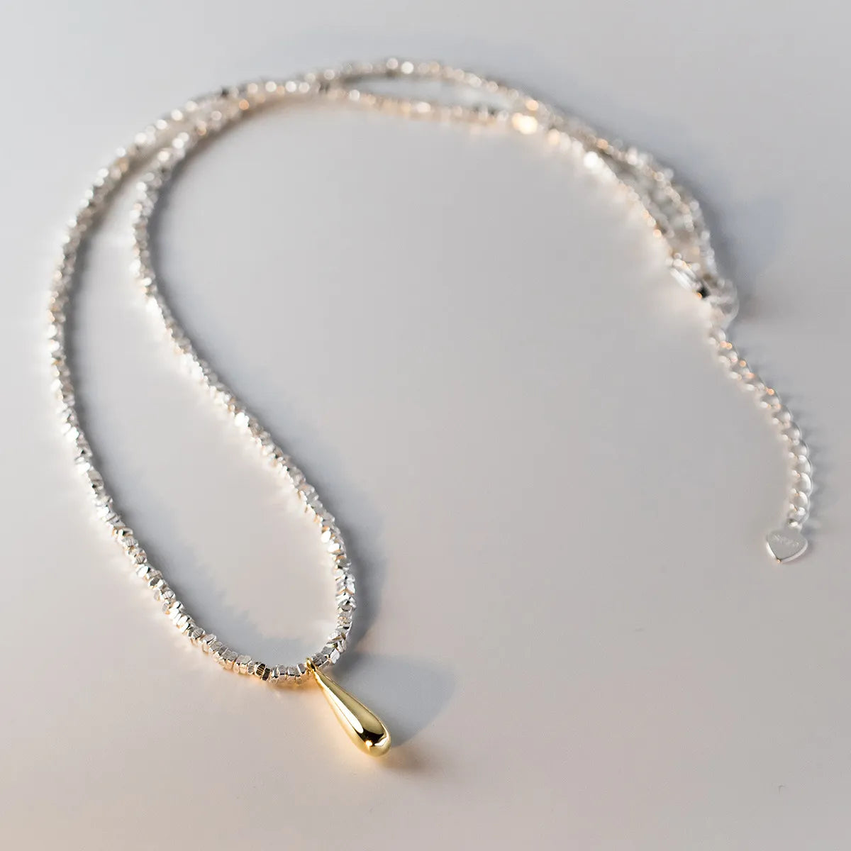 Collana con catena a maglie alla moda in argento sterling 925 a forma di goccia d'acqua
