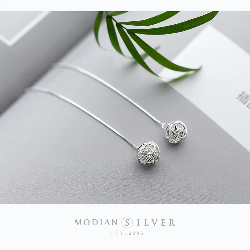 Orecchini a sfera con catena lunga dal design unico e minimalista per donna in argento sterling 925