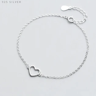 Braccialetto romantico a forma di cuore per donna in vero argento sterling 925