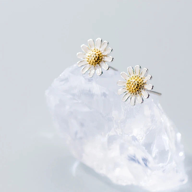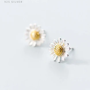 Orecchini a bottone con motivo a margherita in argento 925 per donna