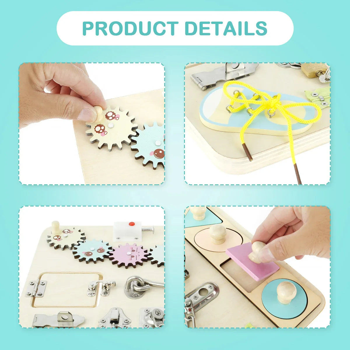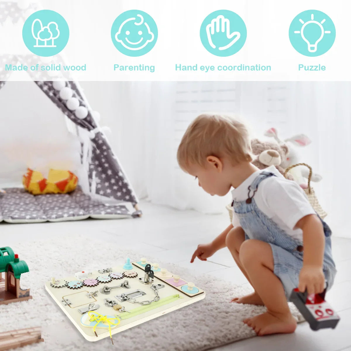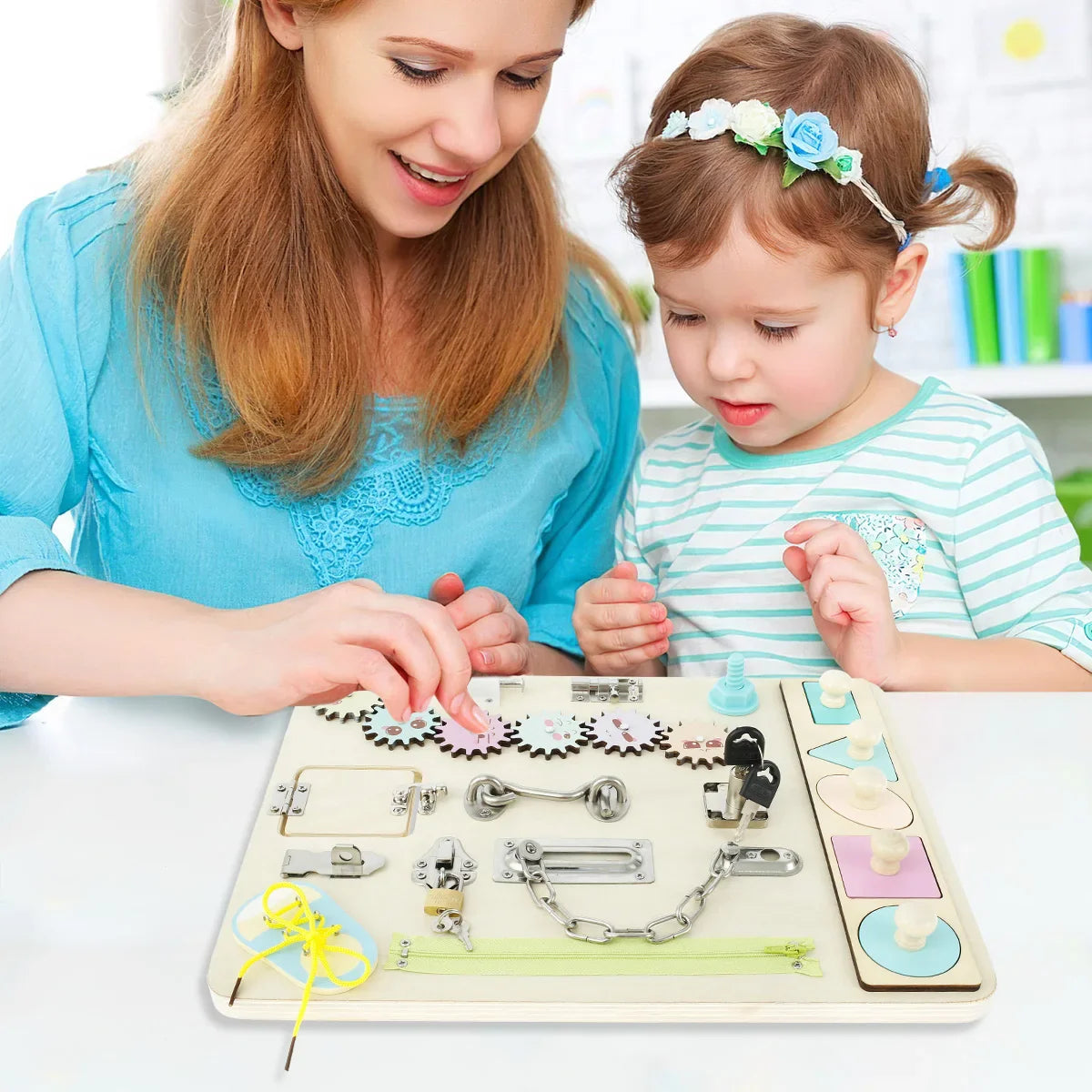 Tavola sensoriale Montessori in legno portatile con chiusure di sicurezza per bambini piccoli