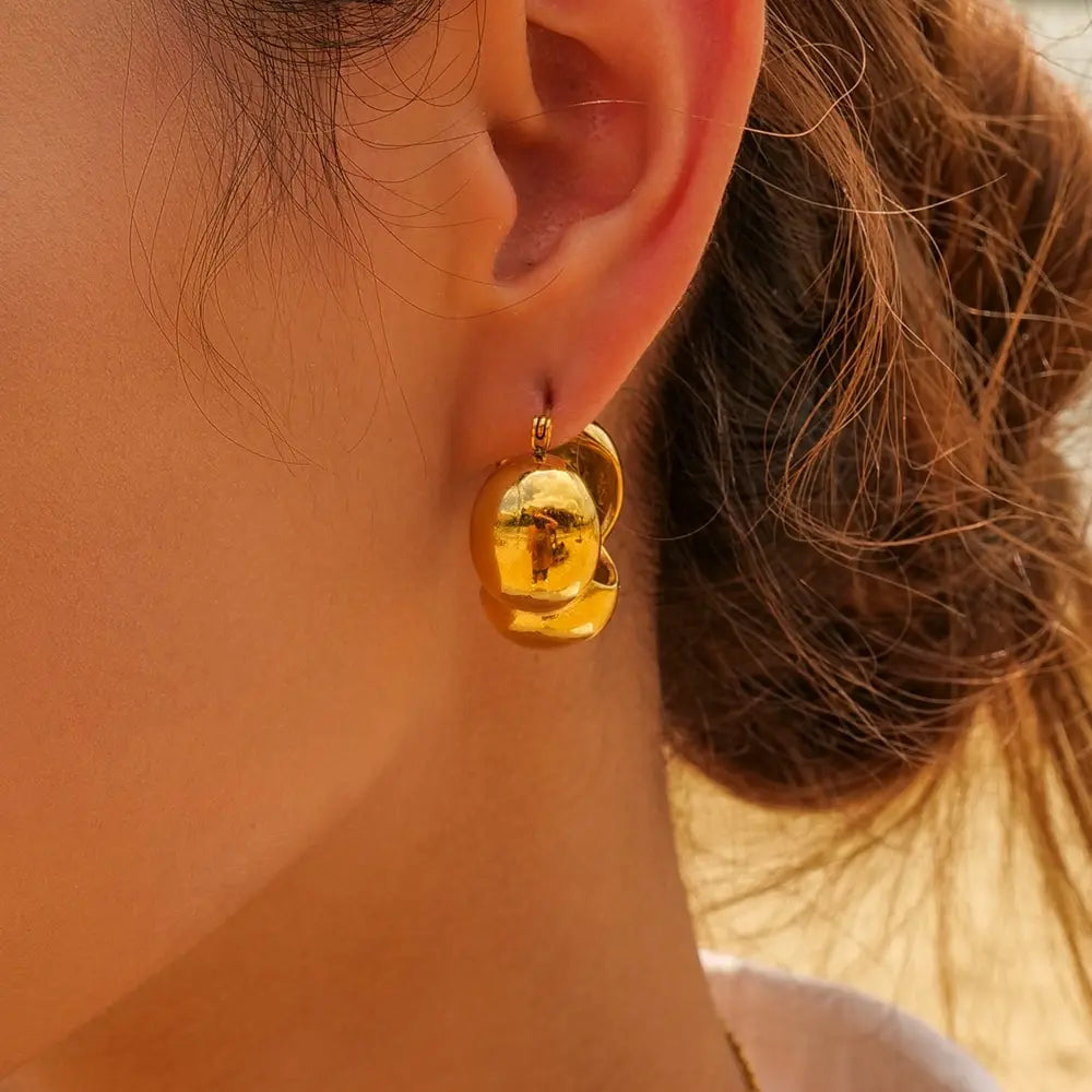 Orecchini a bottone ovali geometrici in acciaio inossidabile placcato oro 18k impermeabili