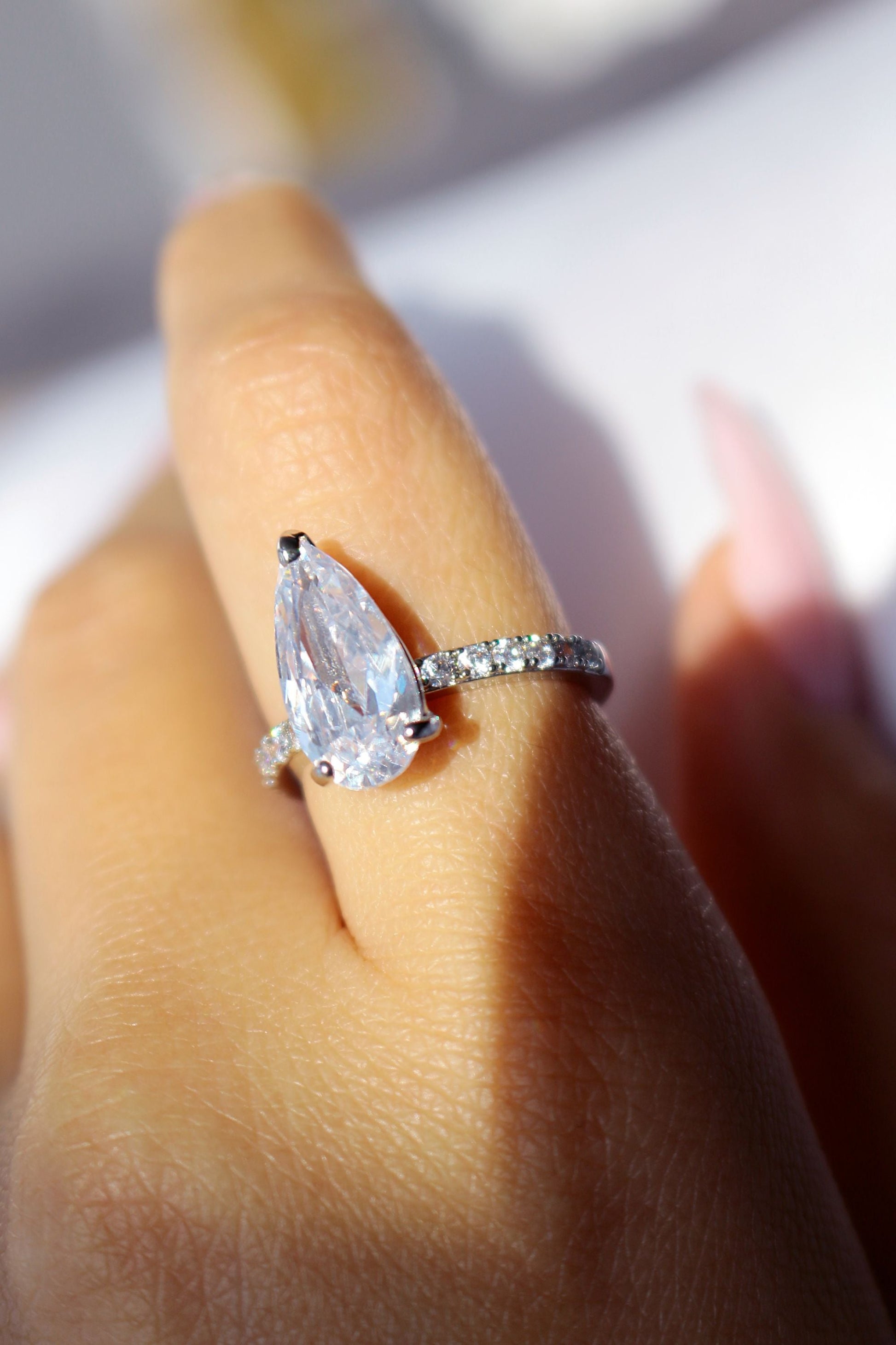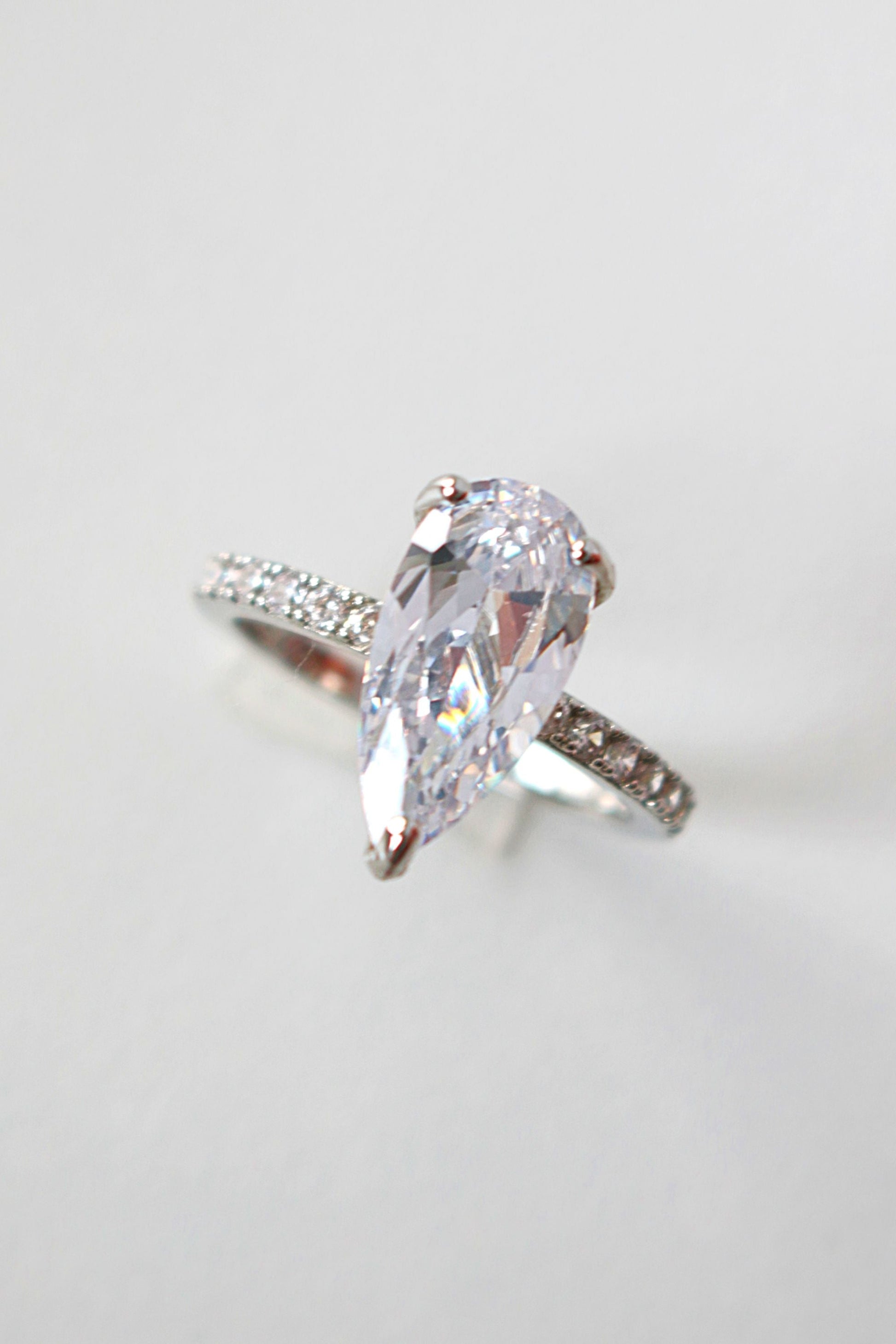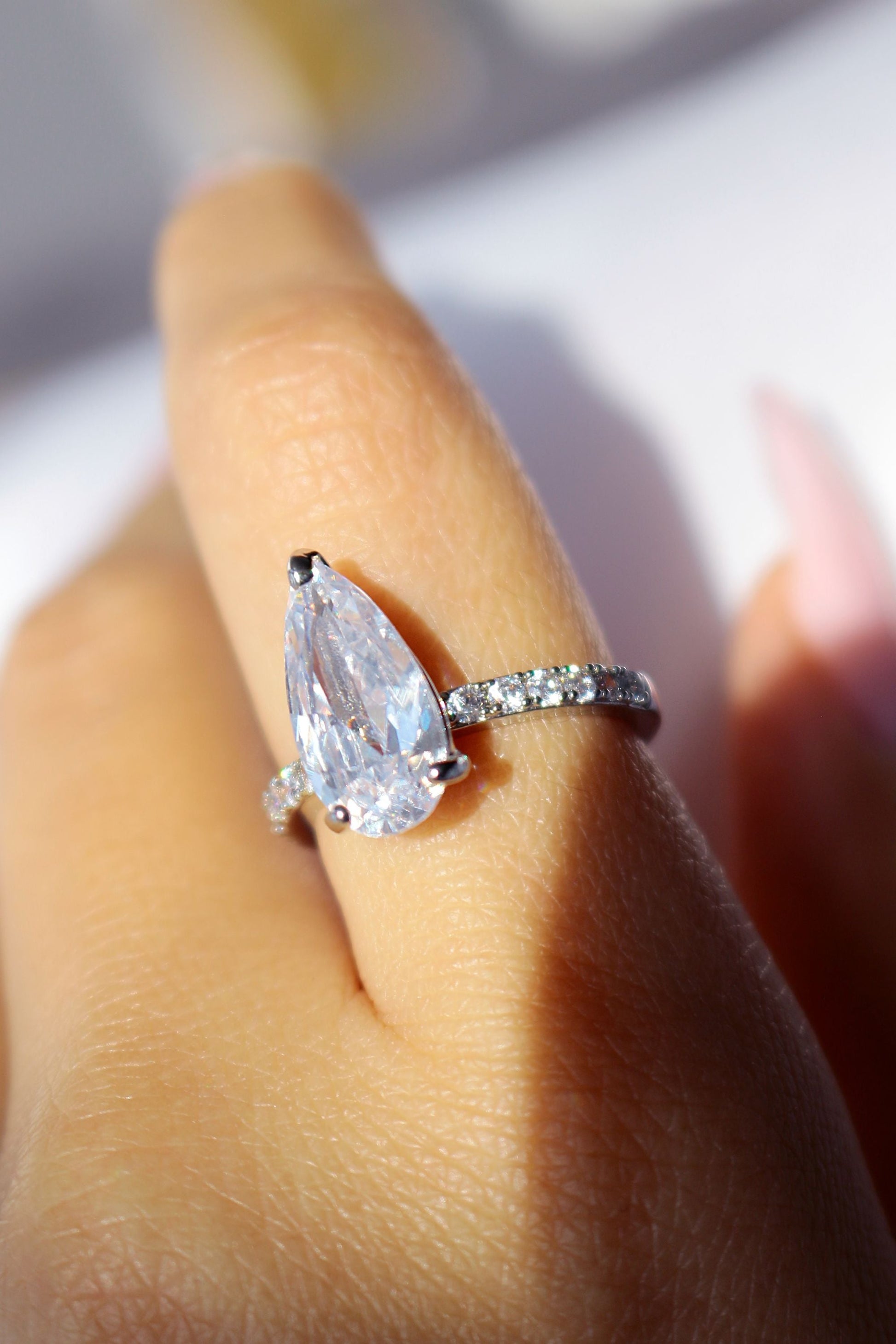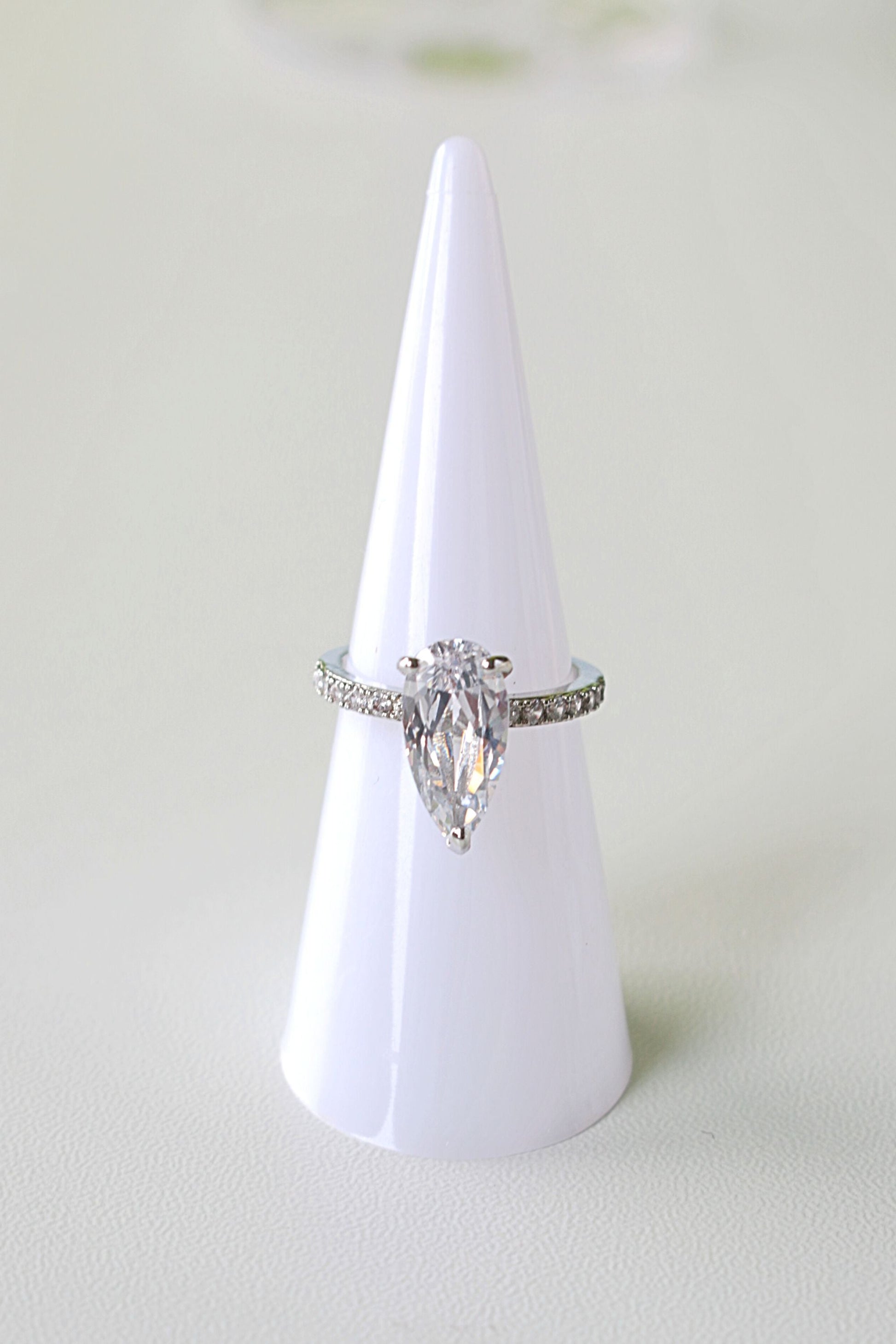 Anello in argento 925 con zirconi cubici e splendida pietra centrale a forma di pera.