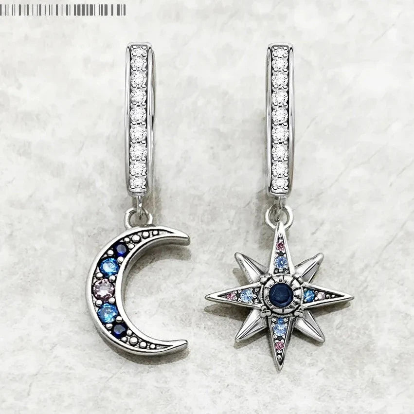 Orecchini a cerchio con cerniera Royalty Star & Moon Bohemia, gioielli raffinati per donne, regalo portafortuna in argento sterling 925