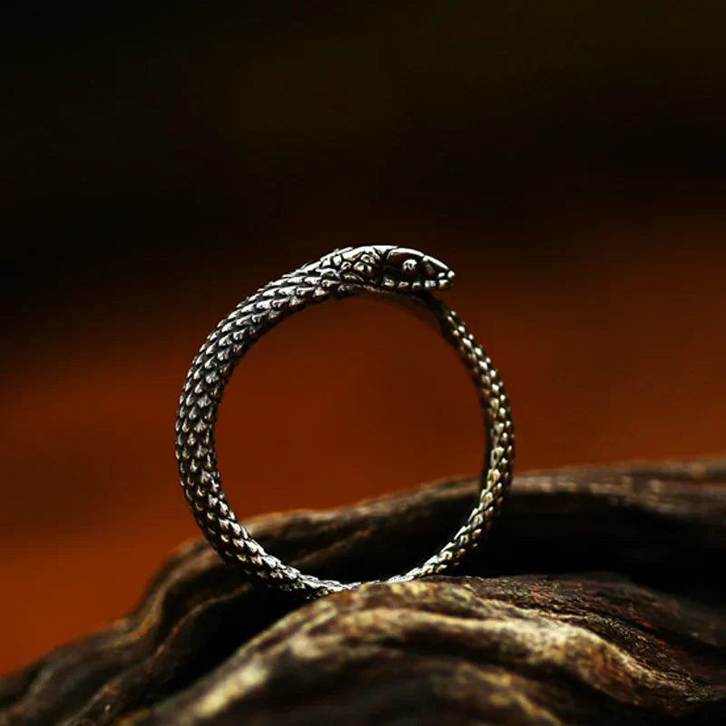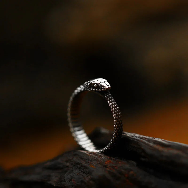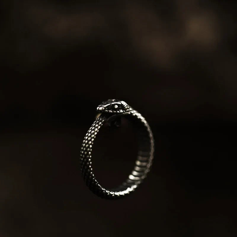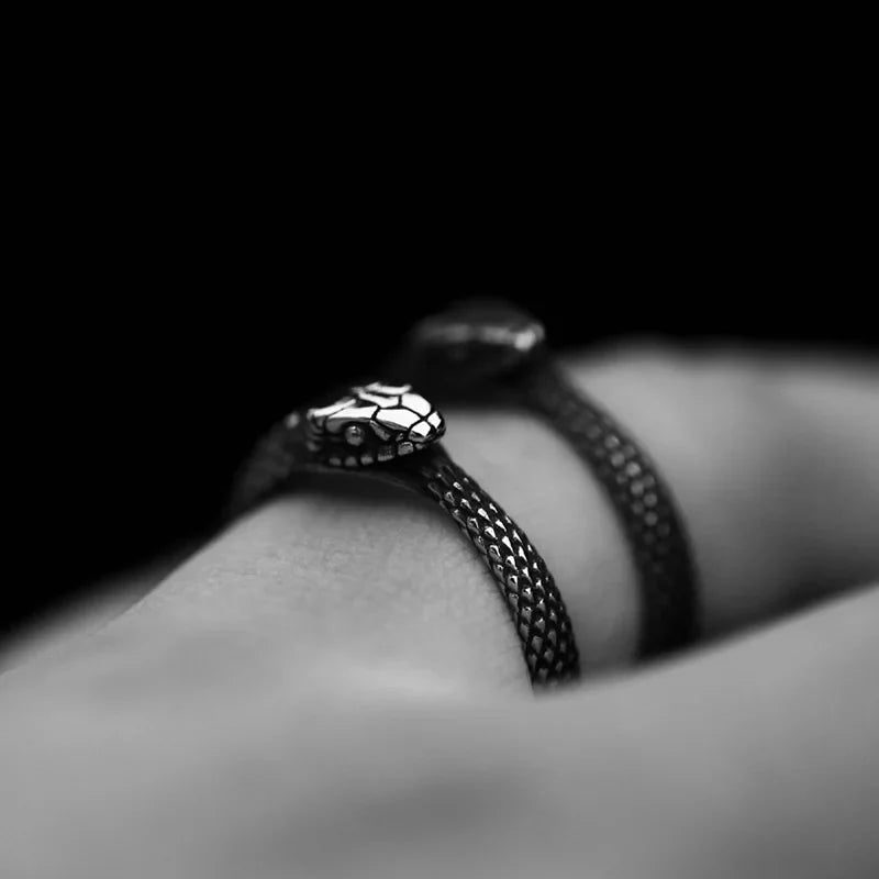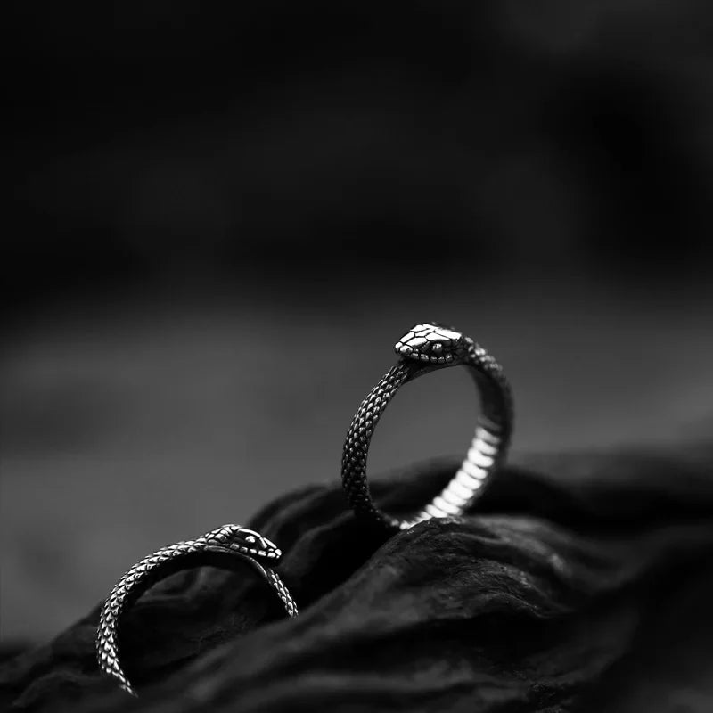 Anello rotondo in acciaio inossidabile con serpente gotico