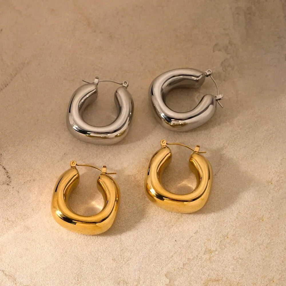 Orecchini a forma di U in acciaio inossidabile, fusione di metallo placcato oro 18 carati, impermeabili