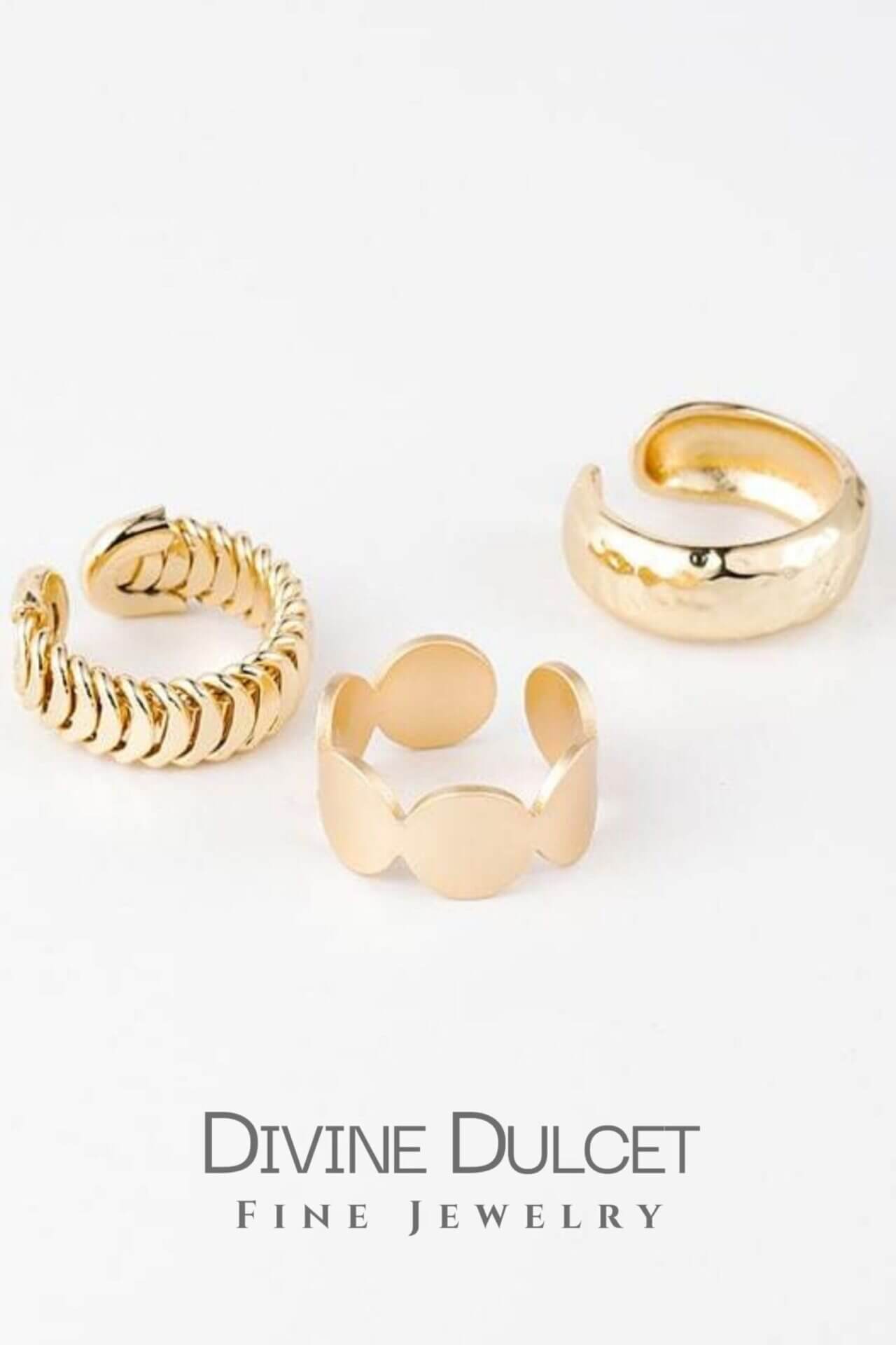 Adjustable gold ring with irregular texture and mirror effect.