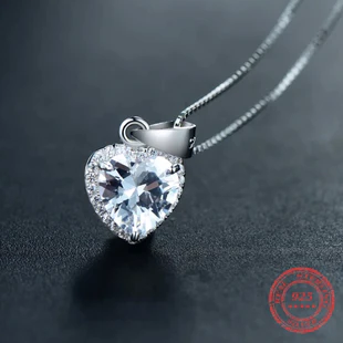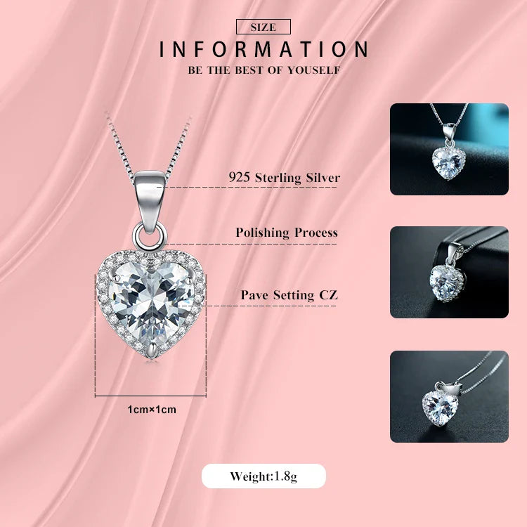 925 Sterling Silver Heart pendant Clear Zirconia For Women