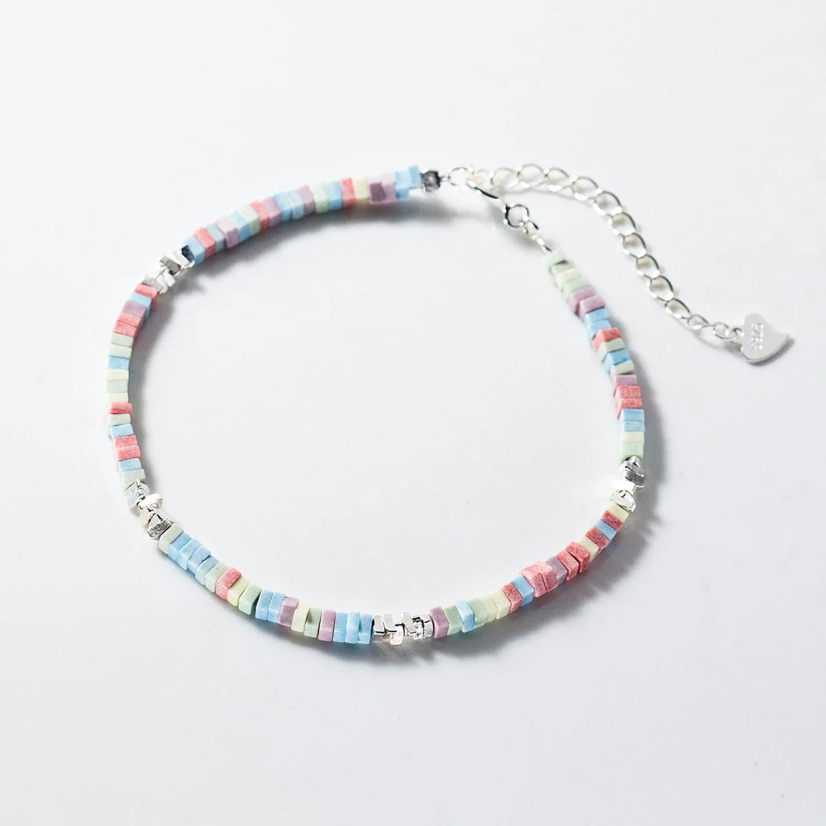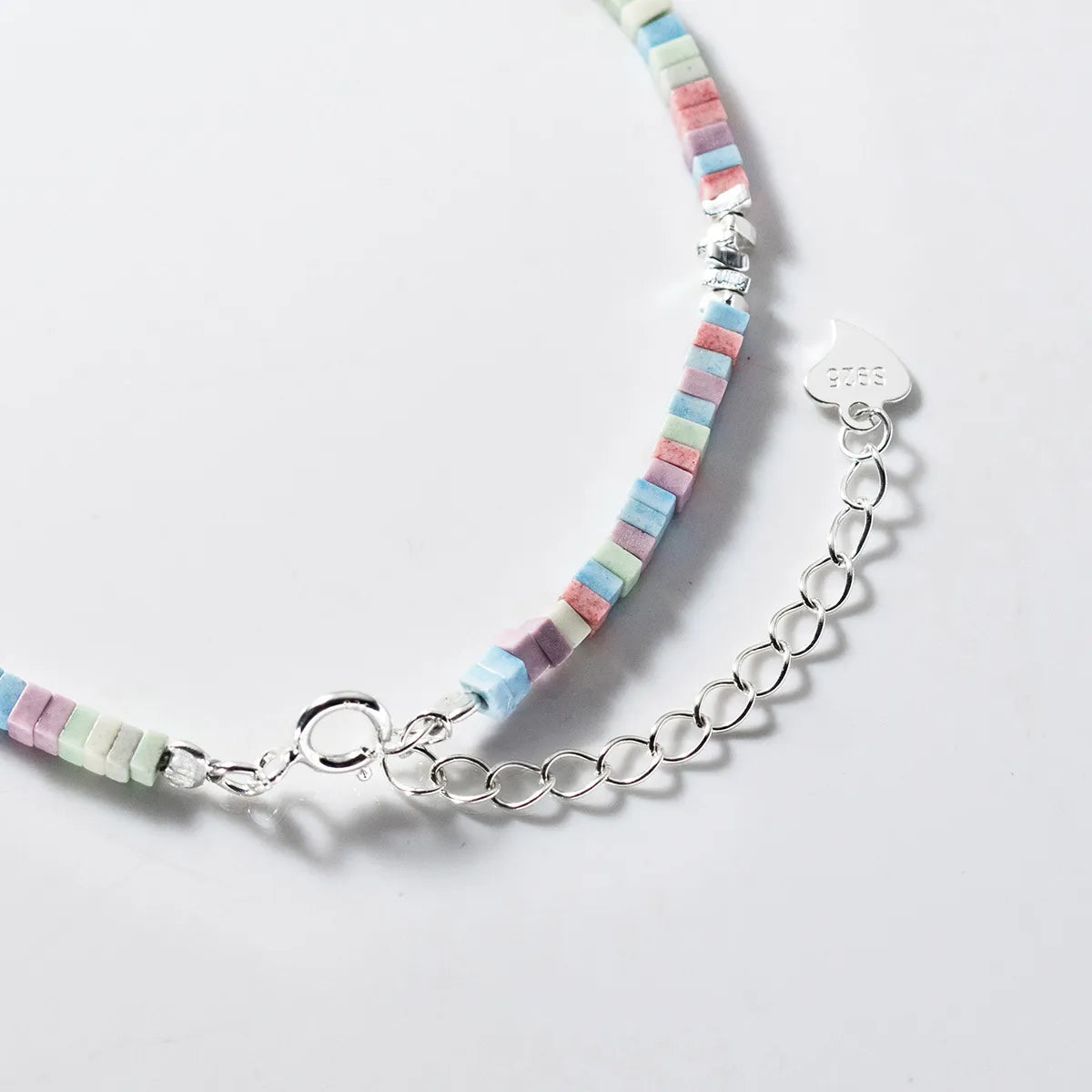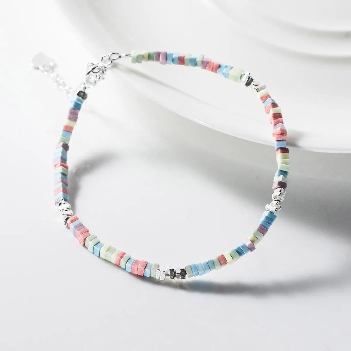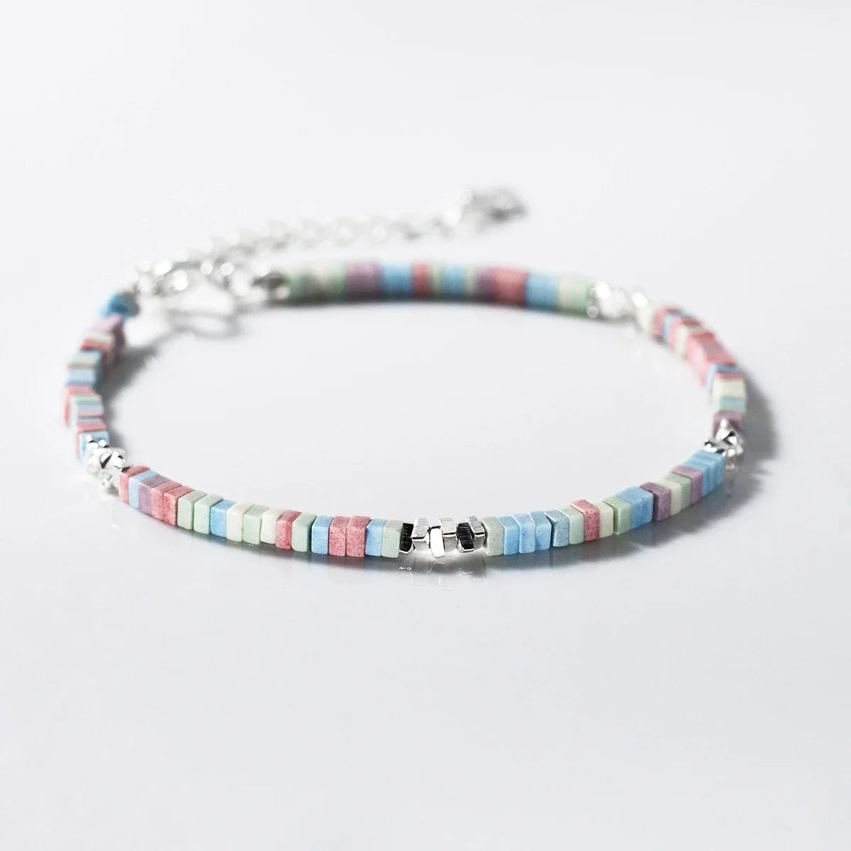925 Sterling Silver Punk Colorful Square Chain Bracelet Rainbow Colo