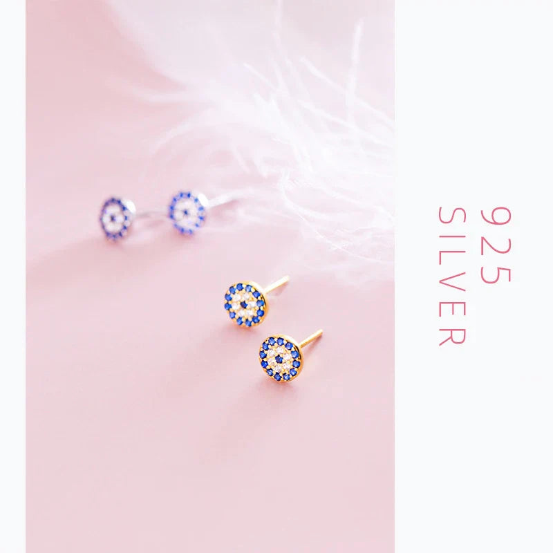 925 Sterling Silver Blue Zirconia Eyes Stud Earrings for Women