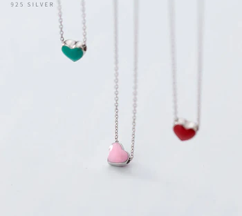 925 Sterling Silver Red Pink Green Enamel Hearts Pendant Necklace for Women