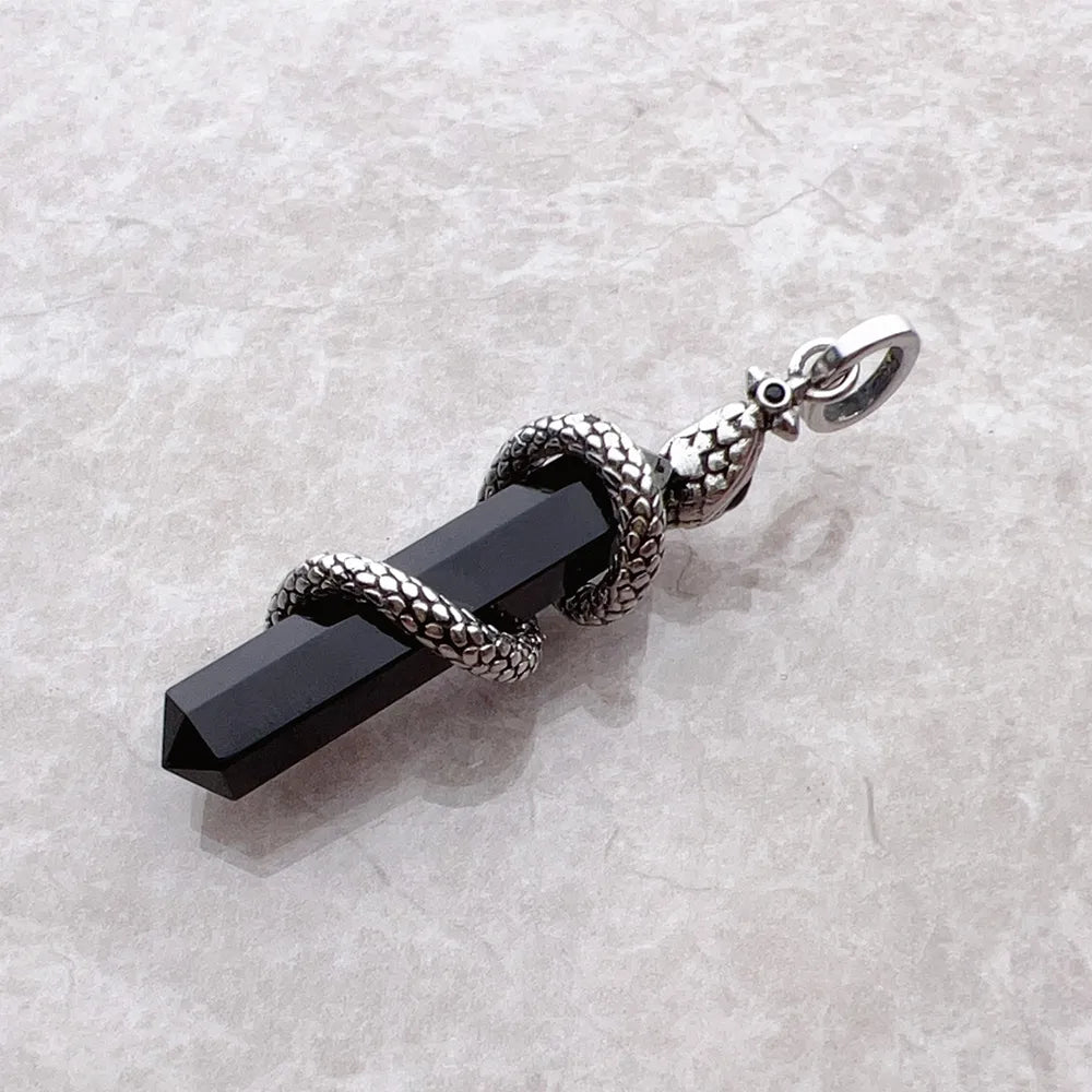 Pendant Snake with Neroened Onyx New Jewelry 925 Sterling Silver Accessories Vintage Gift For Men Women